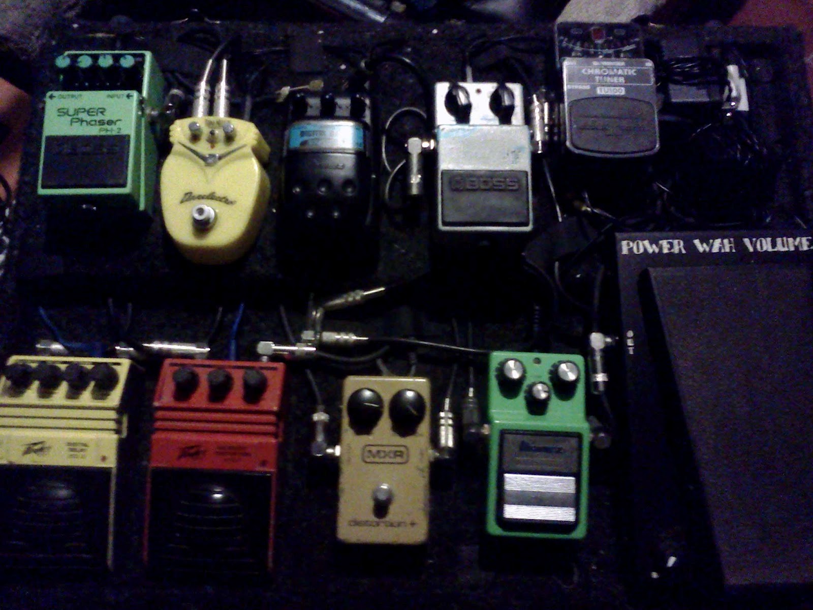 Tenía más de 10 años con mi pedal board anterior, con la misma disposición y orden en los pedales, y solo reemplace algunos pedales como mi delay digital Peavey DDL3 por un Ibanez DE7 (su modo análogo es muy bueno) y el chorus Boss CE-2 por un Neo Clone de Electro Harmonix que en mi opinión suena menos "choruseado" que el pedal Boss.
